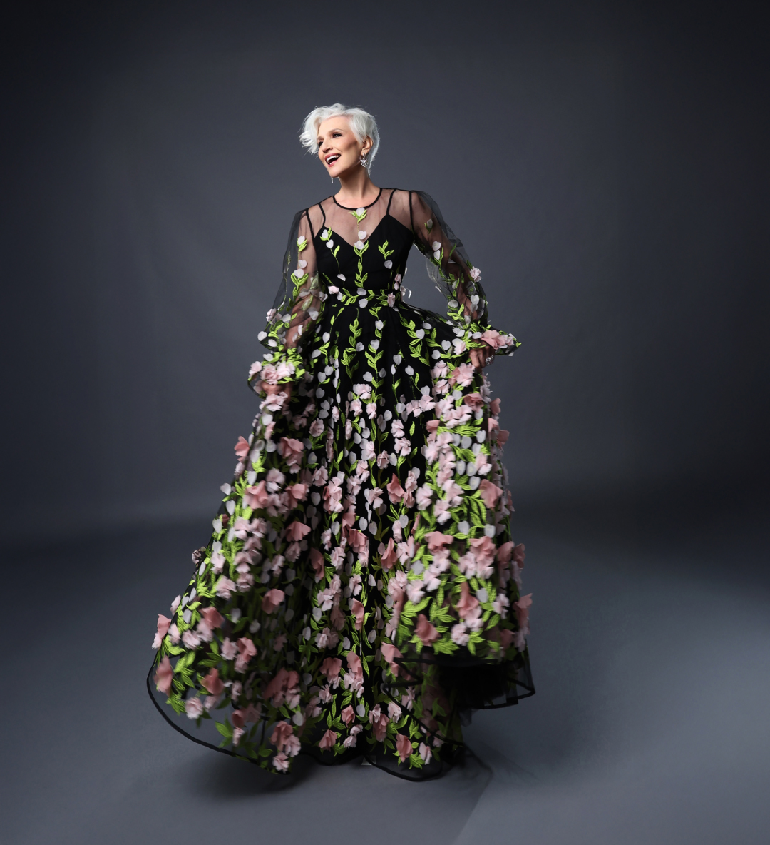 Für das Fotoshooting trug Maye die „Hortensia“-Robe und die „Franceska“-Robe – zwei Looks, die ihre Stärke, Eleganz und zeitlose Schönheit unterstreichen.