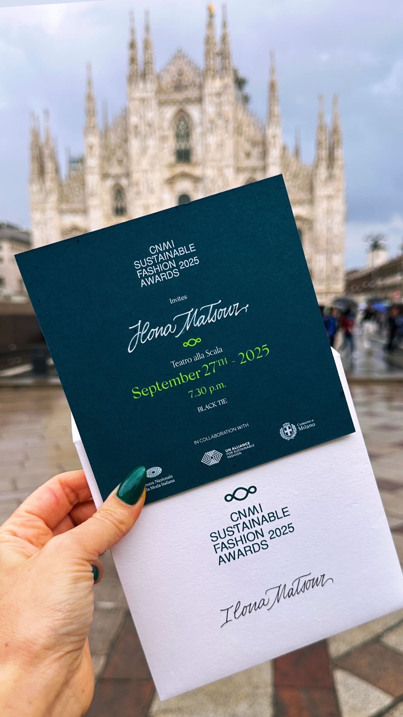 Designer Ilona Matsour attended the Sustainable Fashion Awards / CNMI in Milan – one of the most significant events on the fashion calendar, dedicated to sustainability and conscious design.