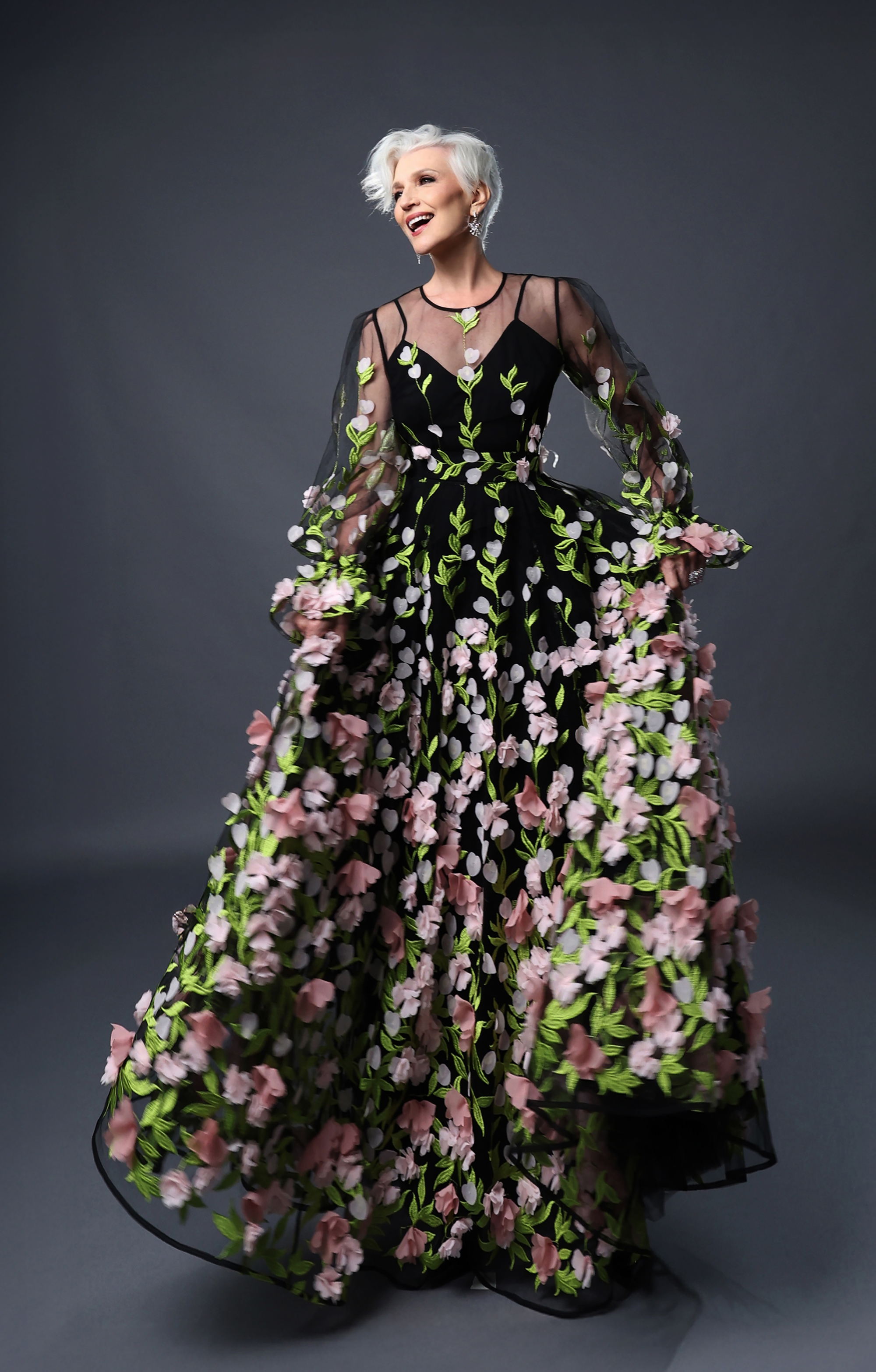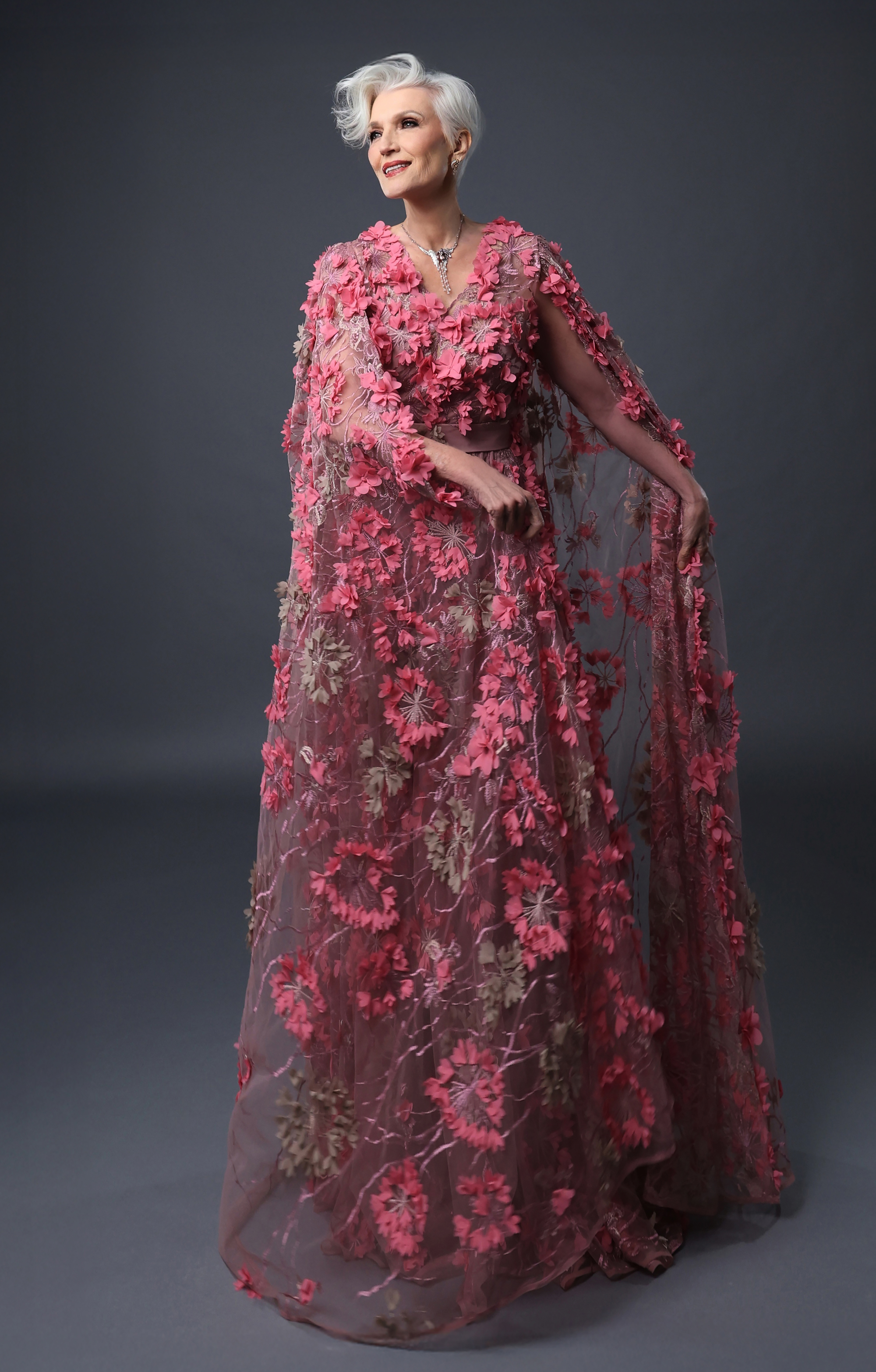 Maye Musk chose a MATSOUR’I dress for her photoshoot and the cover of Marie Claire.